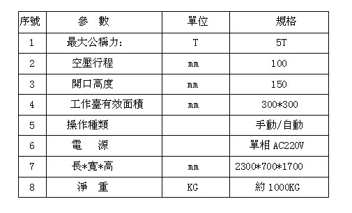 3:機械安全部分工作臺經(jīng)過真空調(diào)質(zhì)處理,表面電鍍處理長期使用不變形,不生銹。裝卸模具之設計簡單,方便,快捷。操作面可加裝紅外線安全裝置。雙手同步操作,急升保護裝置。